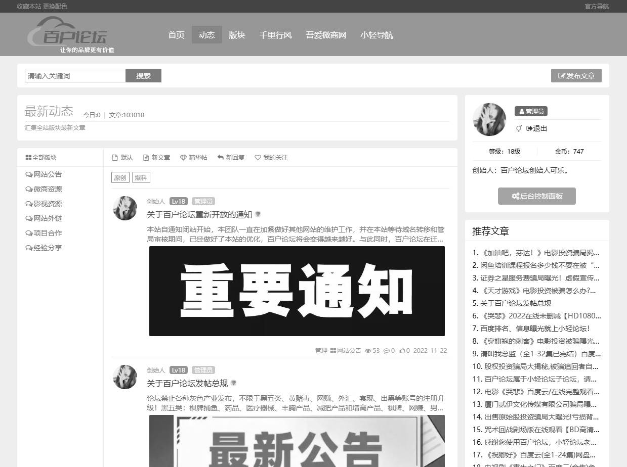 由于百户论坛遭遇不可抗拒的影响,无法恢复原有收录效果。免费运营半年后,高昂的服务器运营费用不得不让我们选择关闭。入驻百户论坛没有收取任何费用,后期没有退款诉求,经商议,本站数据保留一月,原站直接会跳转至吾爱微网,如有异议,请私信小轻客服QQ206524463或微信link-us8。